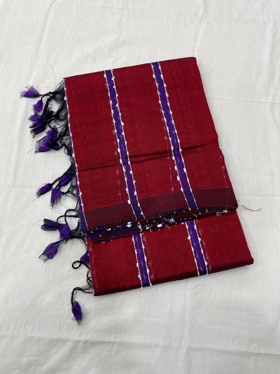 Mangalagiri plain pattu Jute multi stripes Pattu sarees
